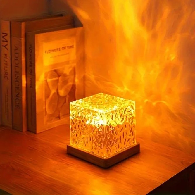 با نور این چراغ خواب اتاق خواب خود را به یک فضای آرام تبدیل کنید. این چراغ مکعبی اتمسفریک، افکت موج سهبعدی آب جذاب و چشم نوازی ایجاد میکند که به فضای شما درخششی گرم و آرامشبخش میبخشد. این چراغ خواب اتمسفریک ایده آل برای ایجاد یک فضای رمانتیک یا استراحت ساده پس از یک روز طولانیاست .